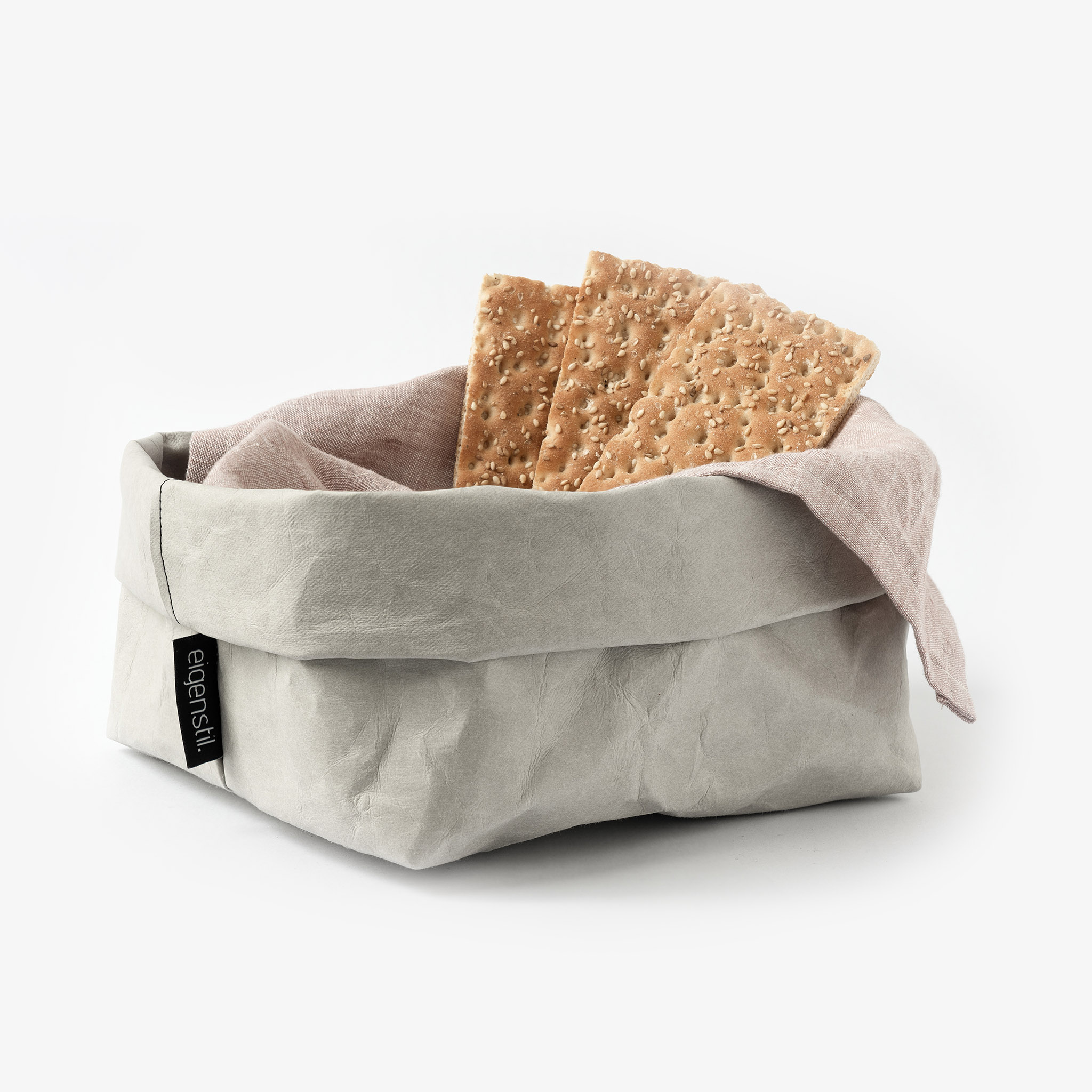 Der „knautschige“ Brotkorb ist auf jeden Esstisch ein Highlight und lässt sich ganz individuell mit Stoffservietten oder Leinentüchern kombinieren.